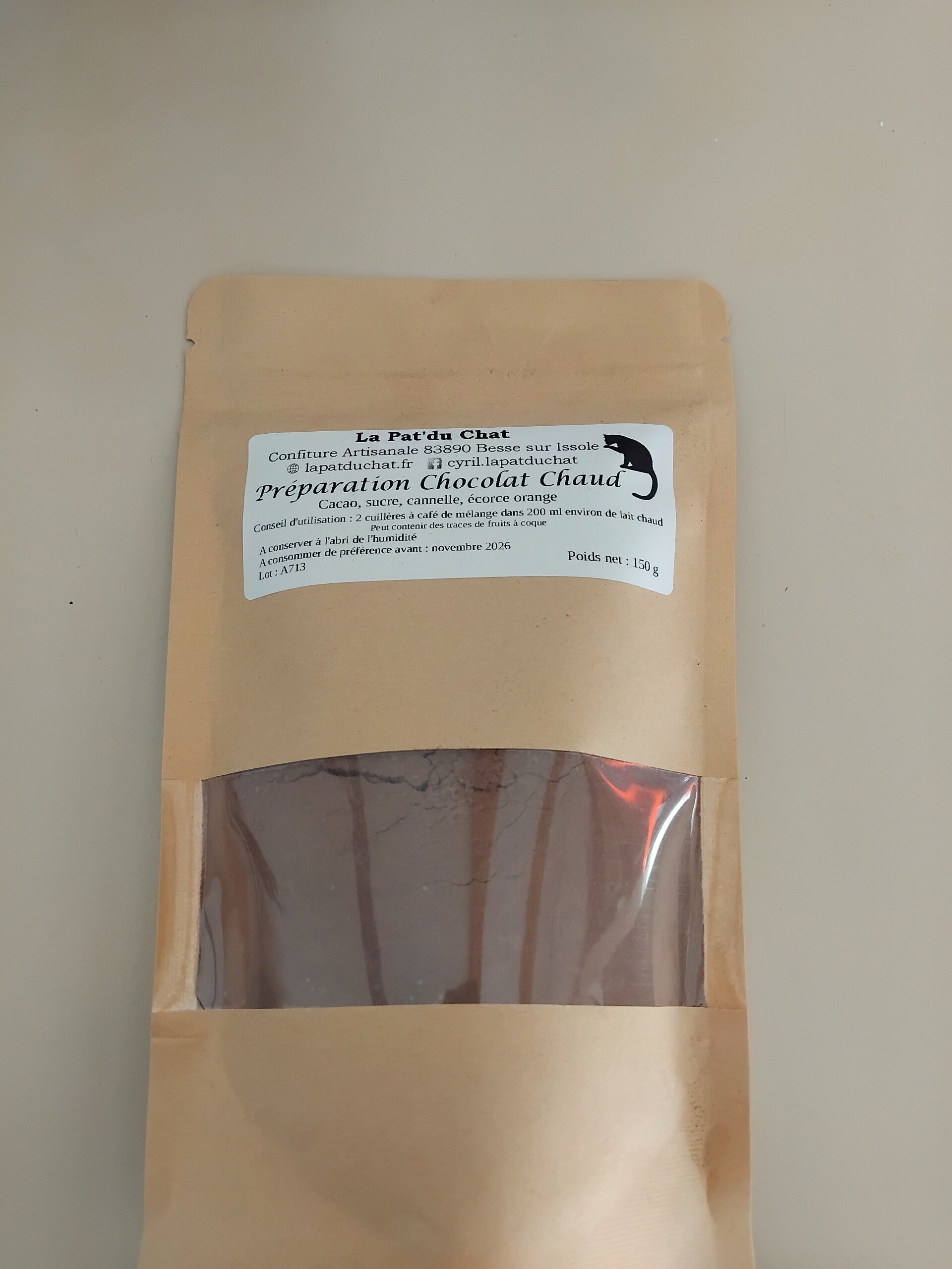 Mélange pour chocolat chaud : cacao, sucre, écorce d'orange, cannelle